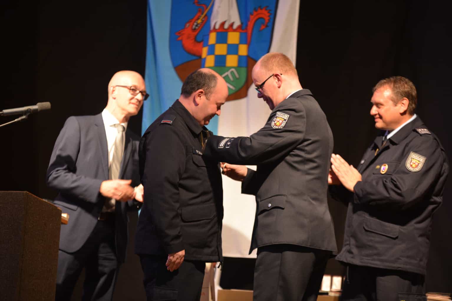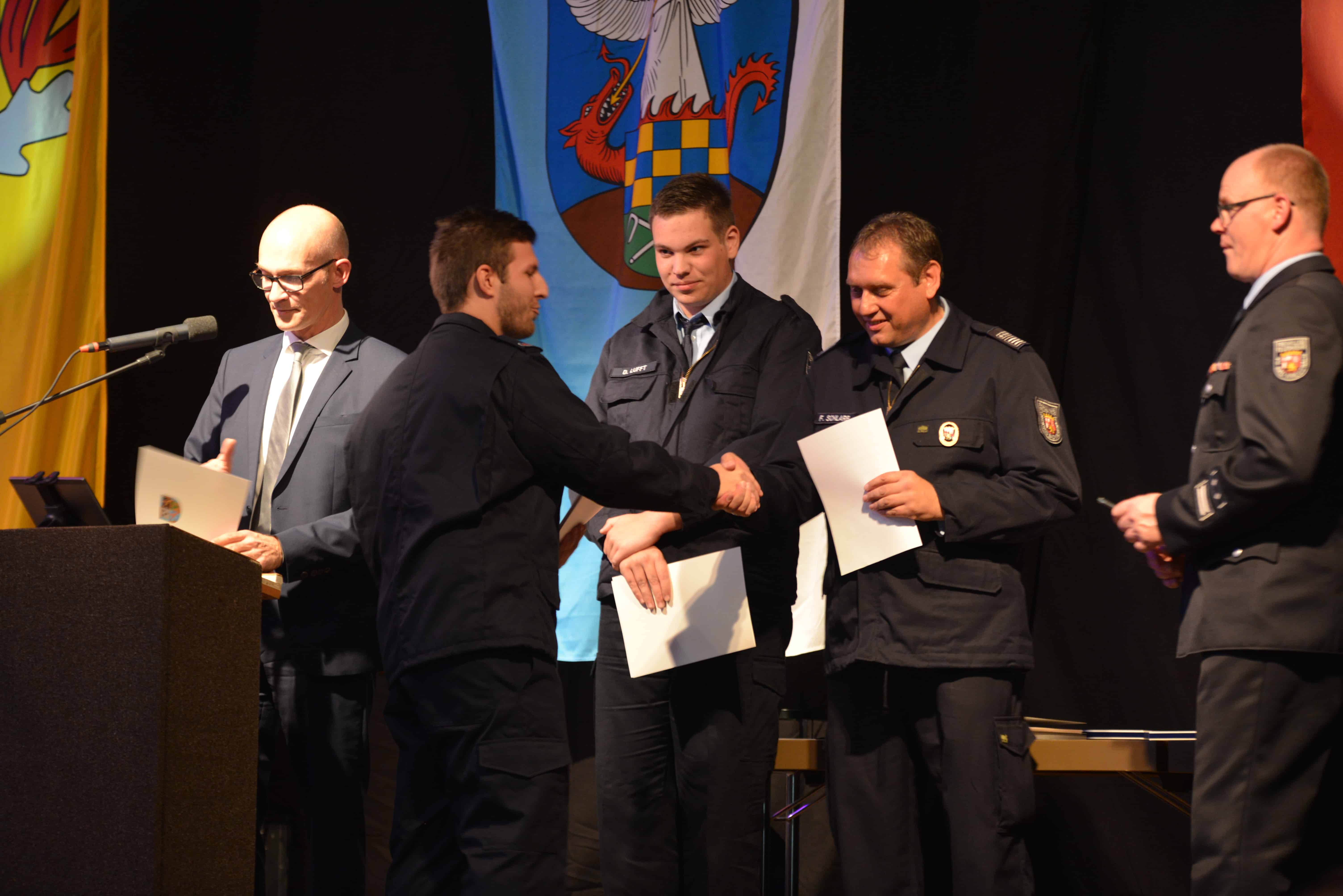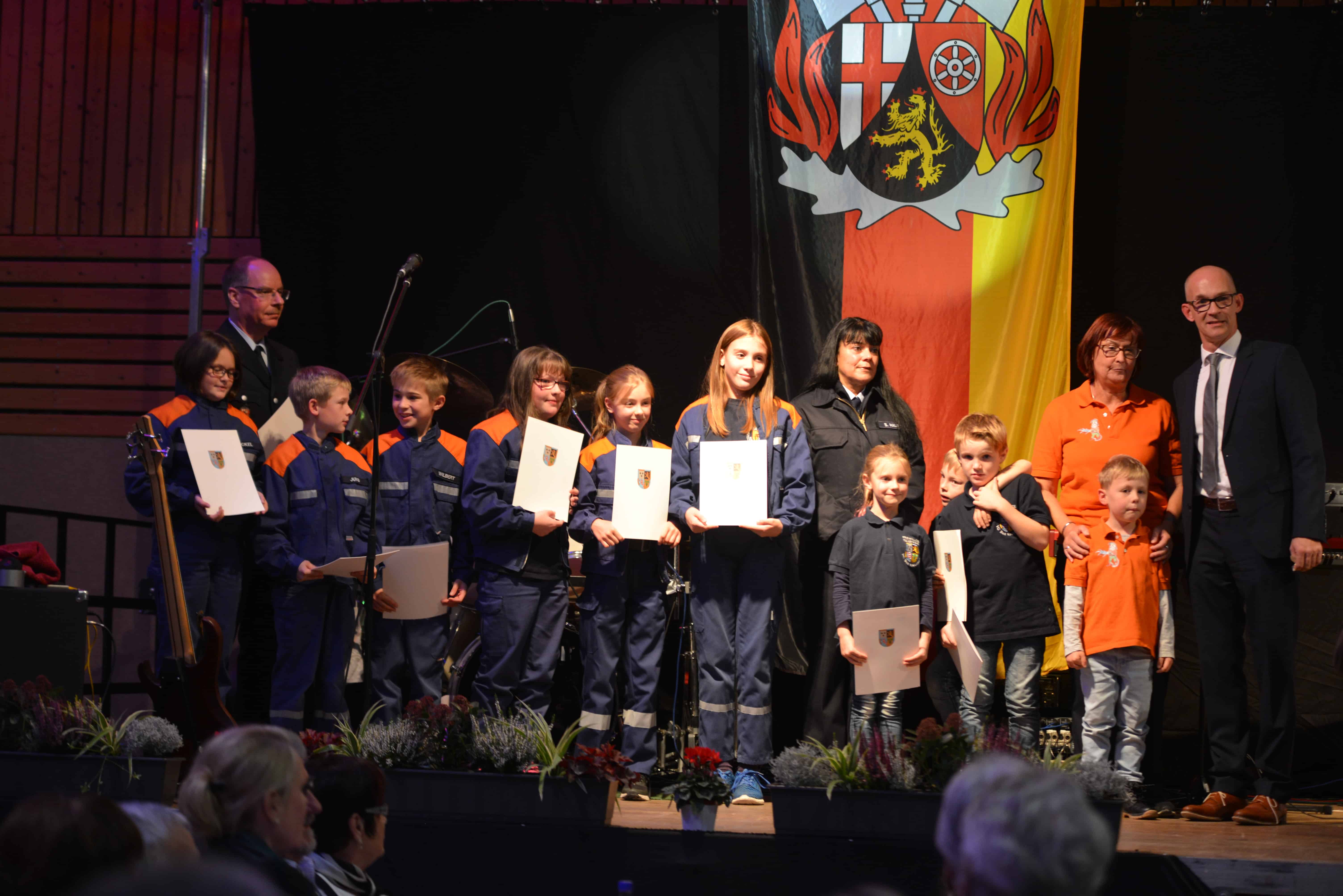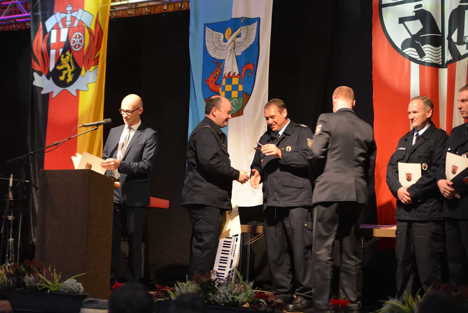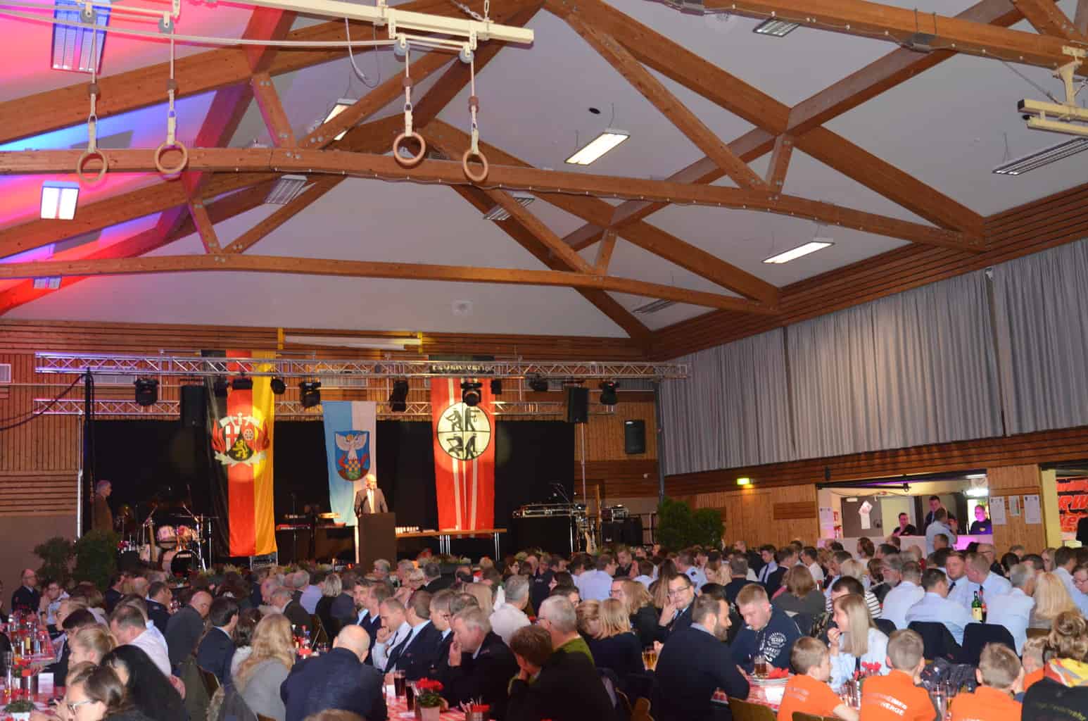 Am vergangenen Samstag, den 03.11.2018 fand in der wunderschönen Rheinhessenhalle in Hackenheim, der diesjährige Kameradschaftsabend der Verbandsgemeinde Bad Kreuznach statt. Mit fast 400 Gästen wurde bis in den frühen Sonntagmorgen gefeiert. Aber nicht nur der Kameradschaftsabend war ein Grund zu feiern, sondern auch die Beförderungen, Verpflichtungen und Ehrungen der Verbandsgemeinde Feuerwehren. Zwei neue Kameraden konnten an diesem Abend für unsere Einheit Hackenheim verpflichtet werden. Unser Quereinsteiger Sebastian Brandt und Brandmeister Daniel Karl, der durch einen Umzug aus Budenheim, zu uns gefunden hat. In die Bambini Feuerwehr (Hackenheimer Löschzwerge) konnte nun offiziell Maximilian Daschko aufgenommen werden. Für 25-Jährige aktive pflichttreue Tätigkeit bei der Feuerwehr Hackenheim wurde Brandmeister Peter Dilly das silberne Feuerwehr-Ehrenzeichen verliehen. Hierzu sagen wir allen nochmal willkommen in der Wehr und Glückwunsch für die Auszeichnung. Die Feuerwehrangehörigen leisten das alles ehrenamtlich in ihrer Freizeit, das ist also ein ganz besonderes Engagement für die Sicherheit der Mitbürger. Die Feuerwehr und der Förderverein FFW Hackenheim bedanken sich nochmal bei allen die uns an dem Abend unterstützt und besucht bzw. mit gefeiert haben.