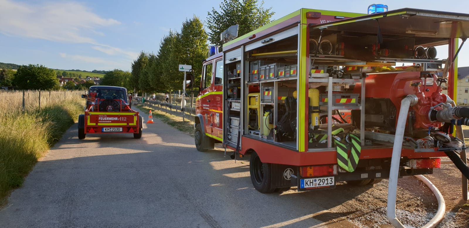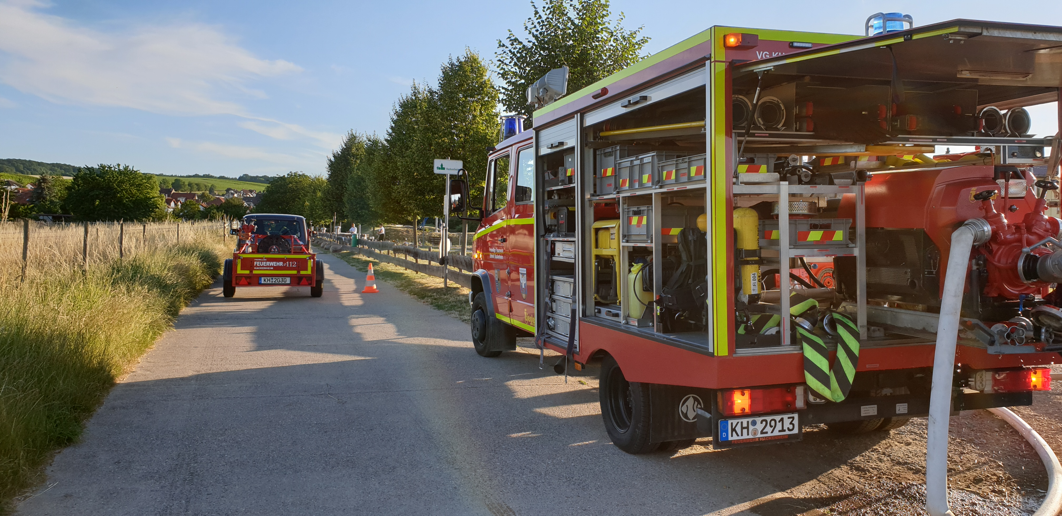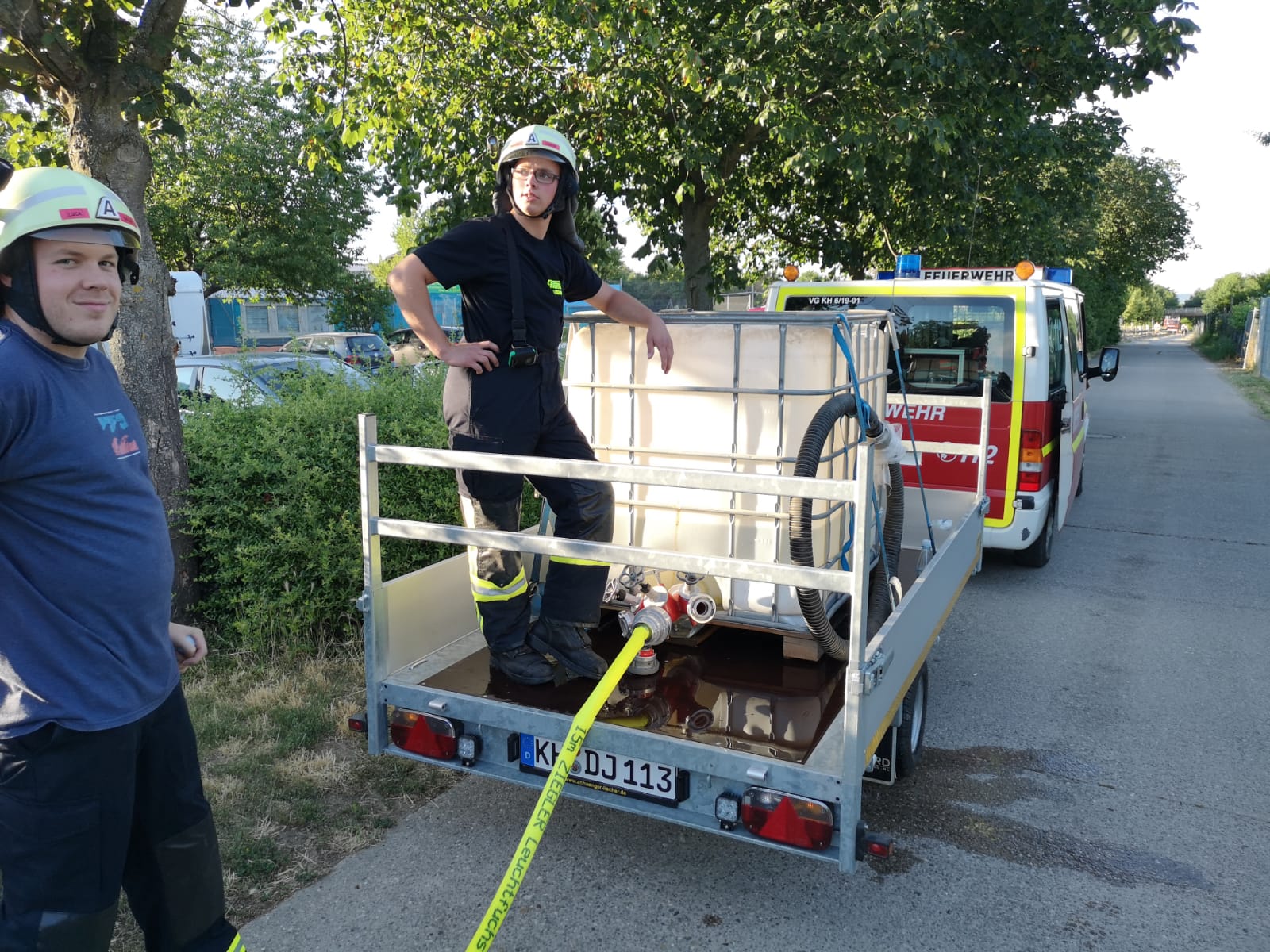 Im Sinne des Klimawandels und der damit immer größer werdenden Gefahr von Wald- und Flächenbränden in unserem Einsatzgebiet, hat sich die Feuerwehr Hackenheim dazu entschlossen, zwei Anhänger zum Wassertransport herzurichten. Diese Anhänger mit Wassertanks von jeweils 1000 Litern, sollen im Einsatzfall auch in den entlegensten Gebieten die Wasserversorgung zur Brandbekämpfung sicherstellen, wo mit Großfahrzeugen kein Durchkommen ist.