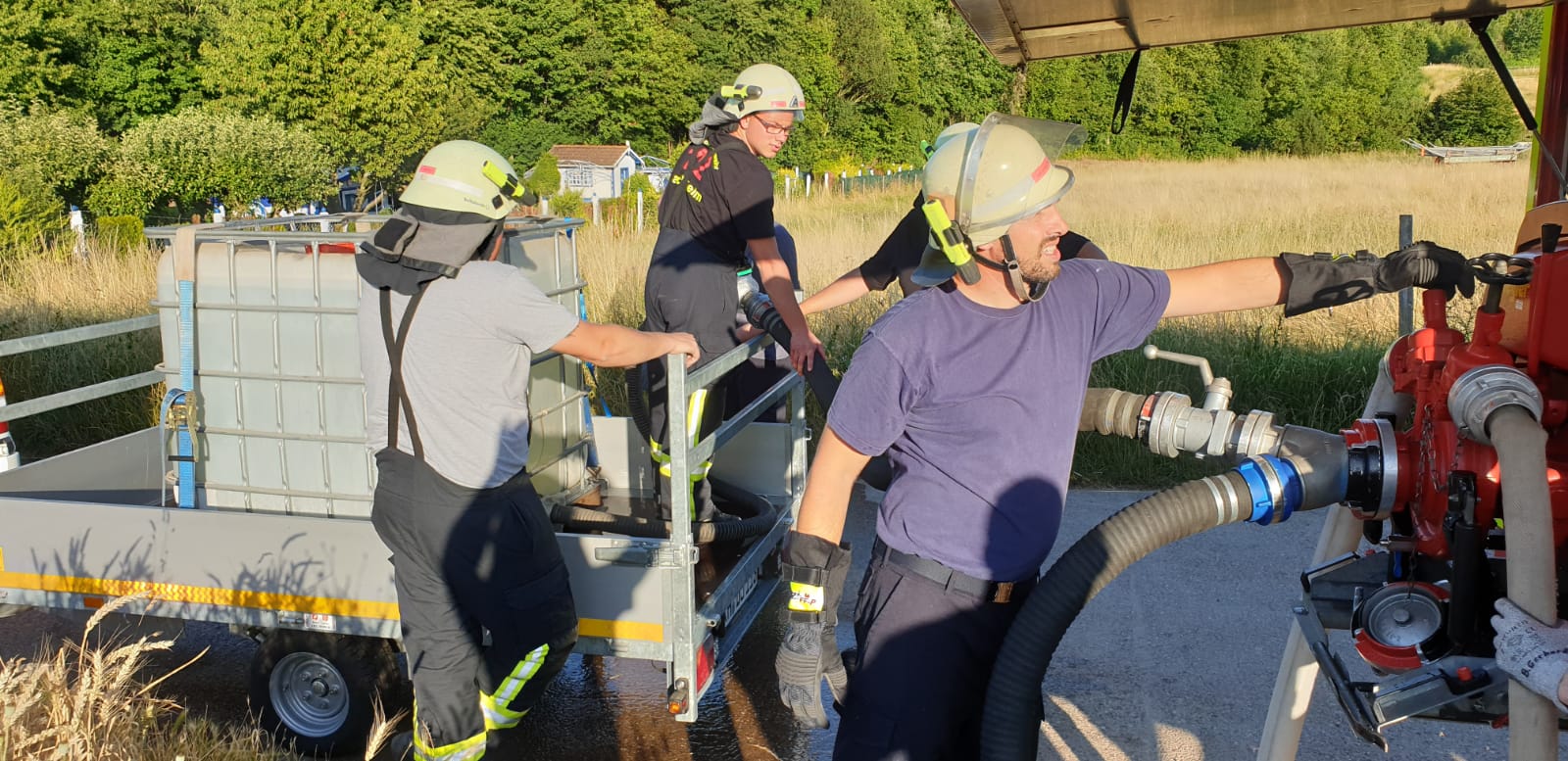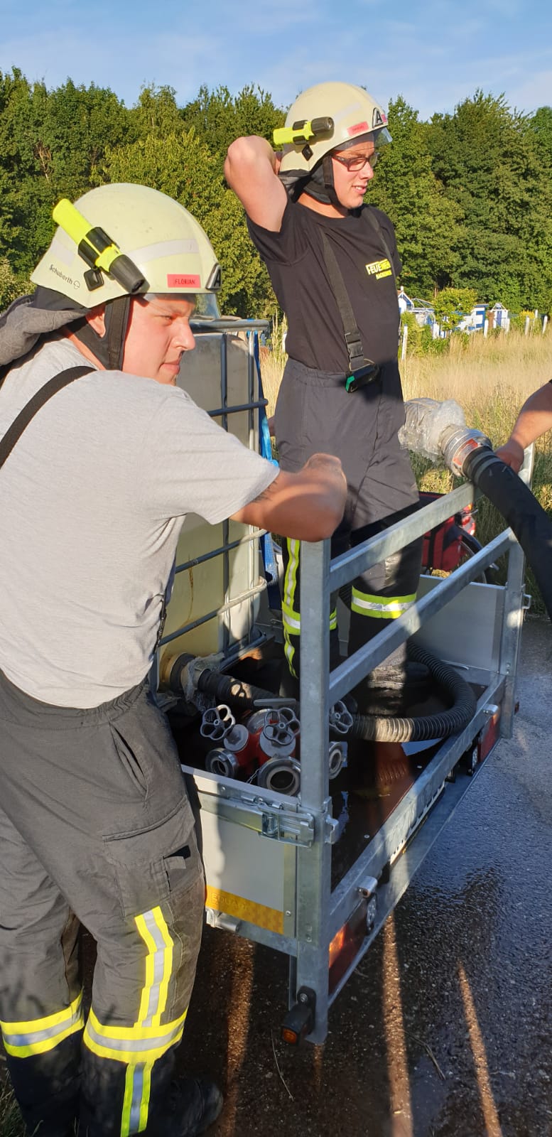 Die zwei Anhänger sind von Feuerwehrkameraden so hergerichtet worden, dass sie durch Tauchpumpen oder Tragkraftspritzen innerhalb von paar Minuten befüllt werden können. Nach über 2 Stunden konnte die Übung mit einem überwiegend positiven Resümee beendet werden. Im Anschluss der Übung gab es gegrillte Würstchen im Gerätehaus.