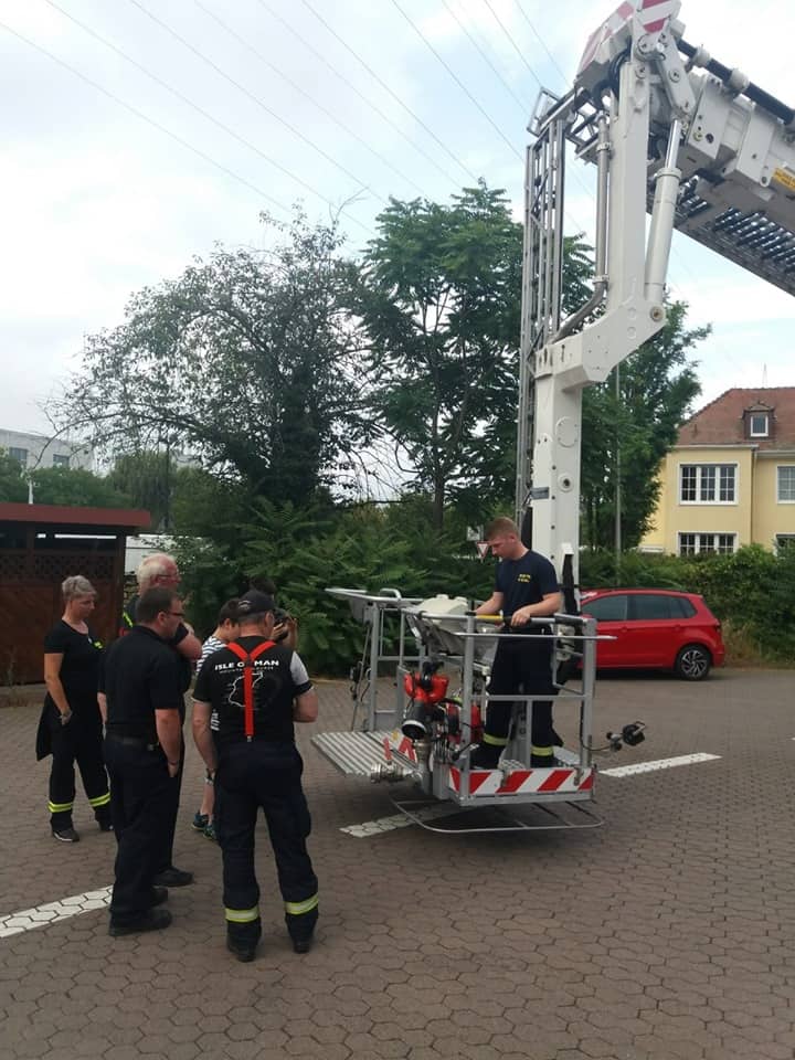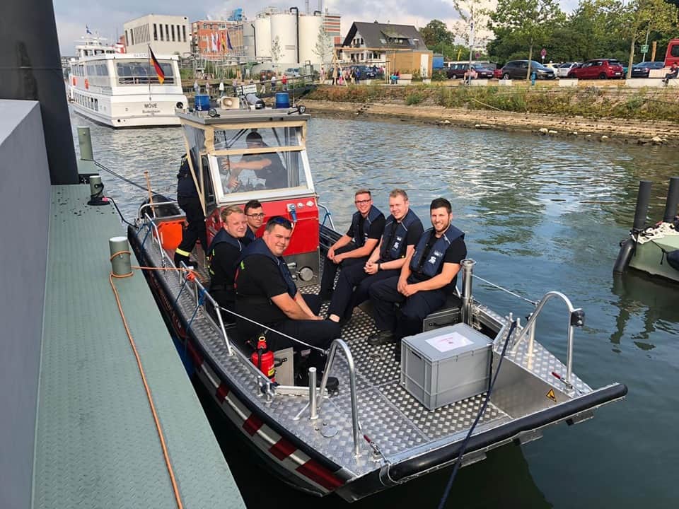 Am Donnerstagabend fuhren wir zur Feuerwehr nach Budenheim. Da unser Gruppenführer Daniel Karl aus der Wehr stammt, kam dieser Kontakt zustande. In zwei Gruppen aufgeteilt konnten wir eine Bootstour auf dem Rhein machen und parallel konnte mit dem Teleskopmast der Ort Budenheim von oben betrachtet werden. Im Anschluss tauschte man sich noch in Fachgesprächen aus, bei einem kühlen Getränk.
