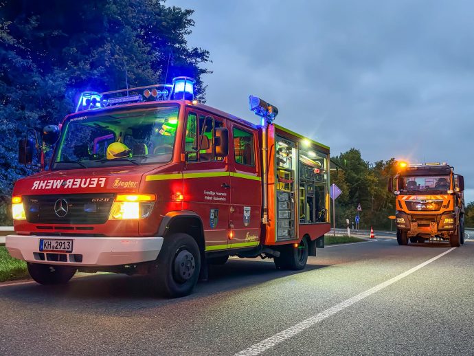 Einheiten: FF Hackenheim, FF Frei-Laubersheim, FF Neu-Bamberg, Führungsstaffel, Polizei, Rettungsdienst, Rettungshubschrauber Chr.53, Abschleppdienst, Gutachter